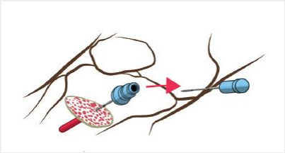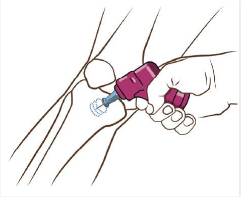 • Push the needle through the skin until it is firmly against the bone ensuring