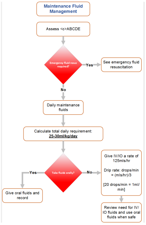 3. Total fluid intake for routine maintenance = 30ml/kg/day. Example 100kg = 3