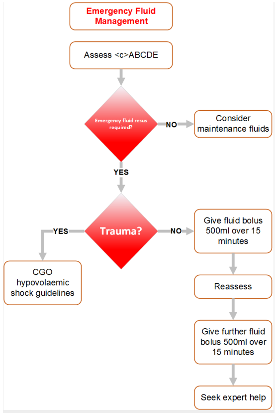 1. Does the patient require emergency resuscitation fluids? If so, follow