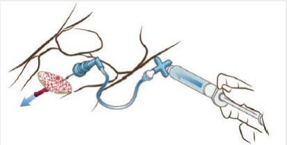To remove the catheter from the patient, attached a Luer-lock syringe,