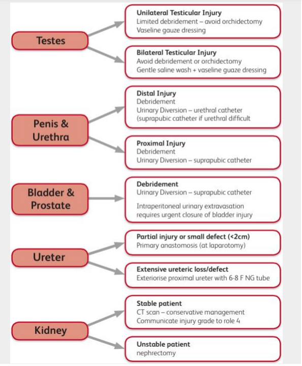All casualties with genitourinary trauma should be referred to the Military Genitourinary